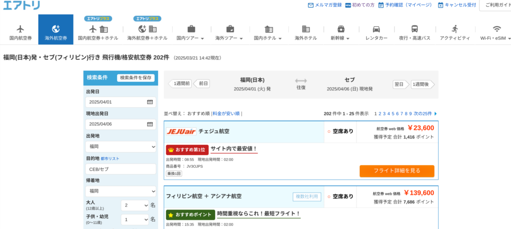 「エアトリ(AirTrip)」は、格安航空券・海外旅行予約に特化した人気サイトです!
